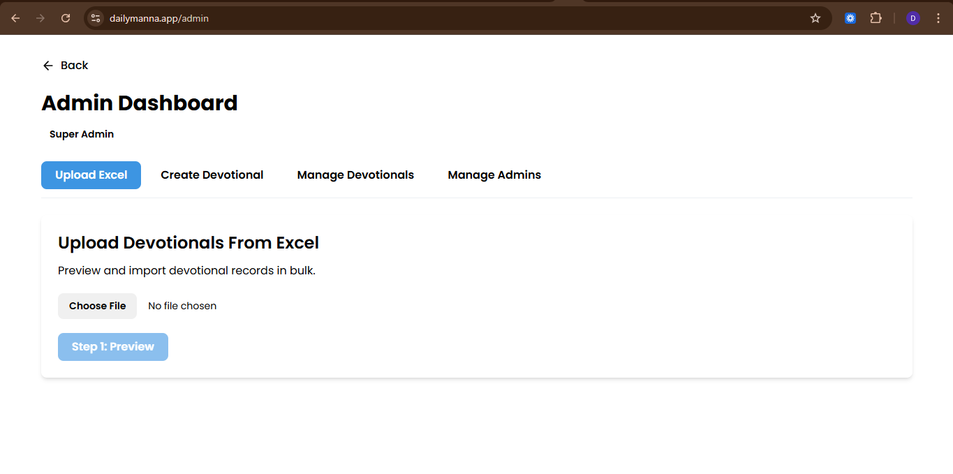 - Three-tier admin dashboard — bulk Excel upload pipelines, individual devotional creation, role-based admin management, and content moderation tools.