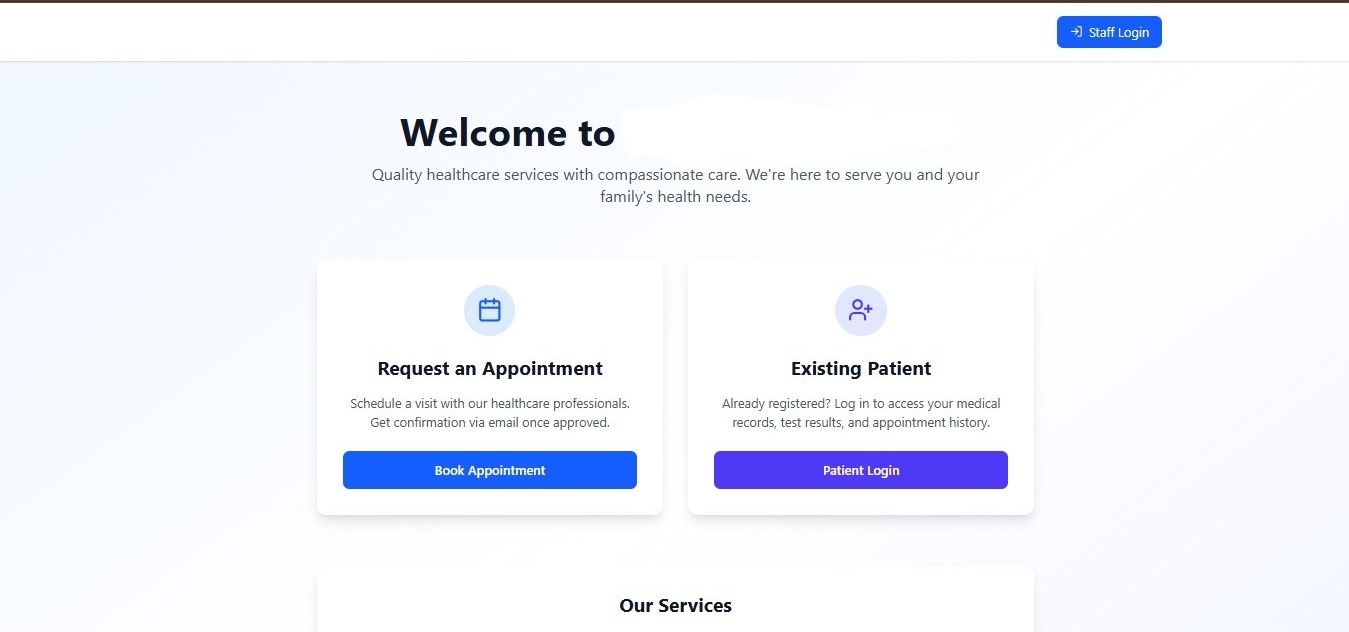 - Patient portal — appointment booking, medical record access, test result delivery, and patient login.